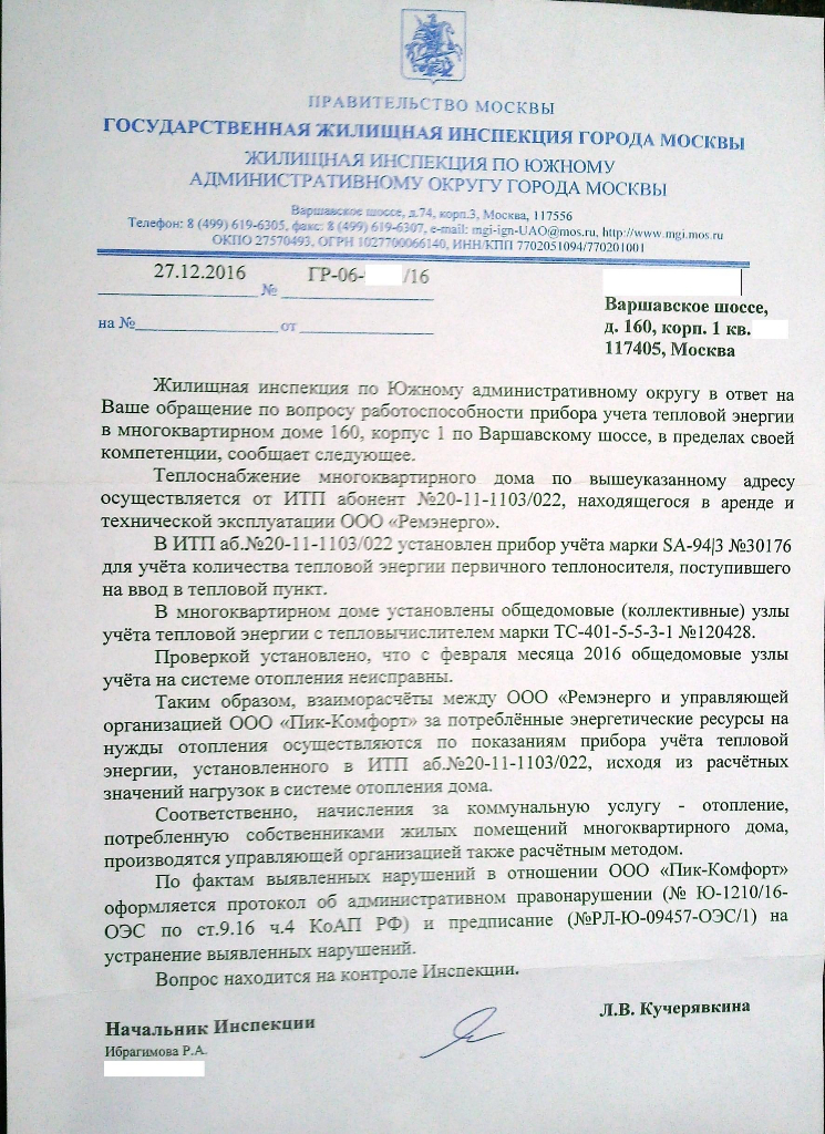 Как оказалось, управляющая компания два года не корректировала суммы, указанные в квитанциях, в зависимости от фактически потребляемых объемов тепловой энергии. Нарушение выявили сотрудники Мосжилинспекции, куда жильцы пожаловались на завышенные коммунальные платежи.