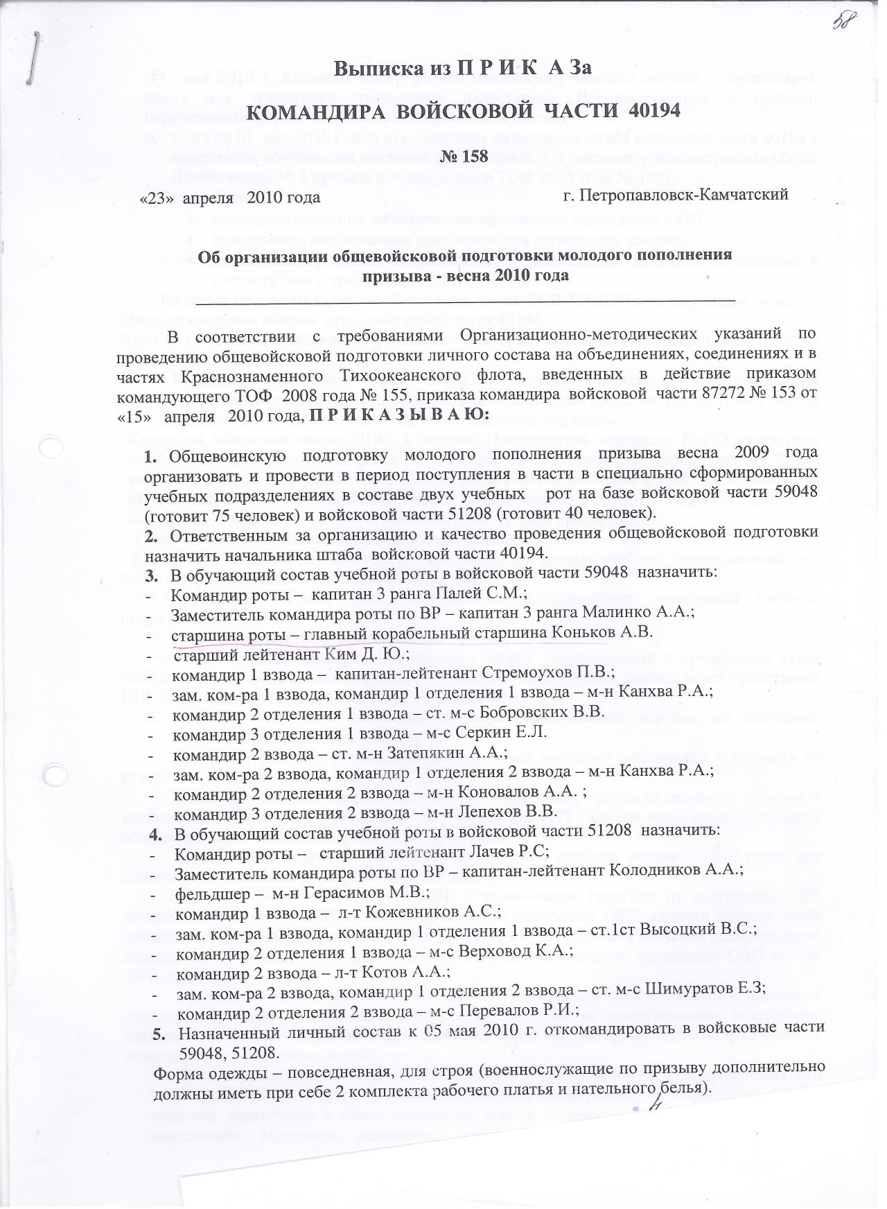 А ещё понравилось: "подготовки личного состава на объединениях, соединениях и в частях", тож, видимо, такой "морской конёк"."Выписка из ПРИКАЗа" - мне было бы стыдно...