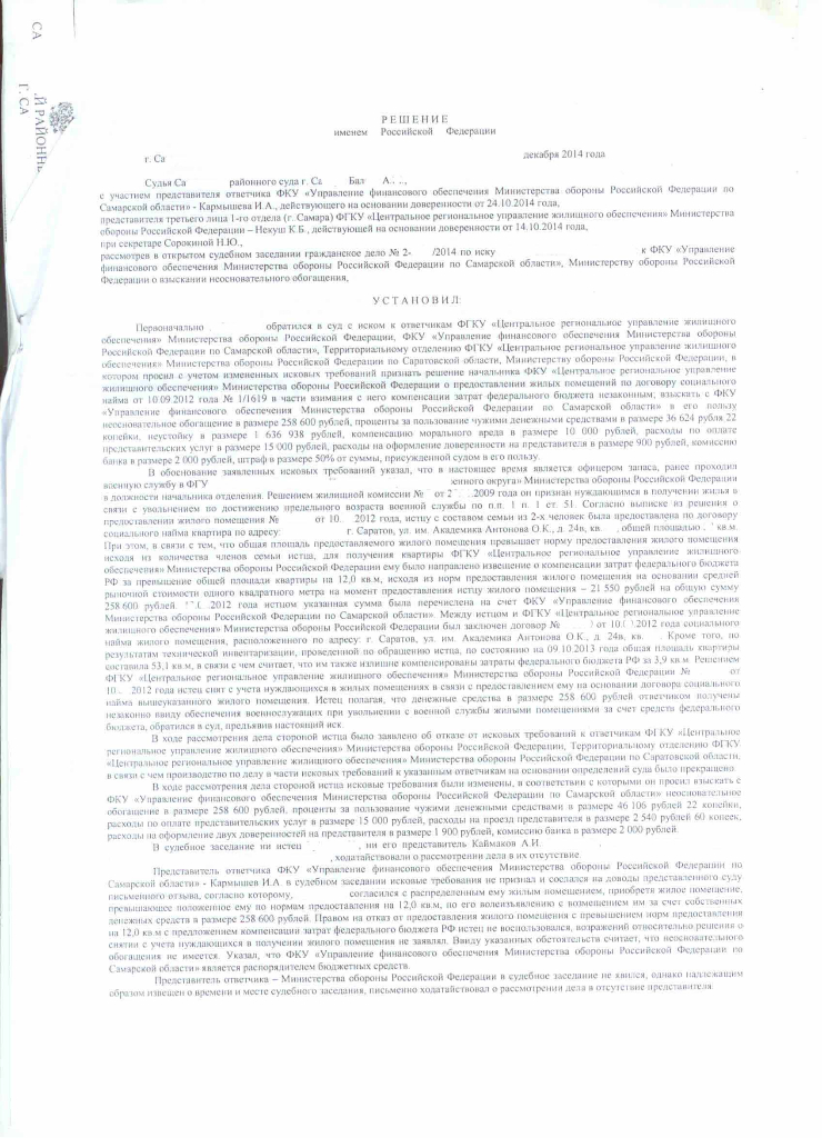 в феврале 2015 года подала исполнительный лист в спец.казначейство на взыскание денежных средств с МО РФ за сверхнормативные метры.
