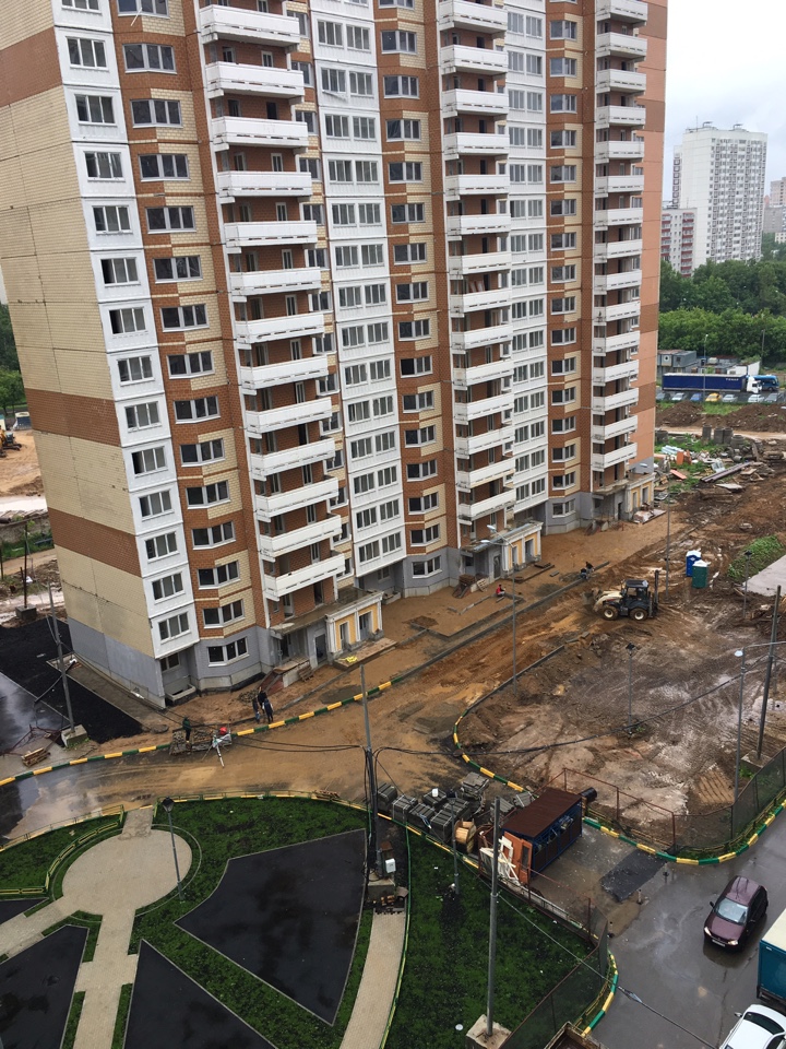 15 корпуса благоустройство территории полным ходом, бордюры, дорога, не хватает РТП, для целостной картины.