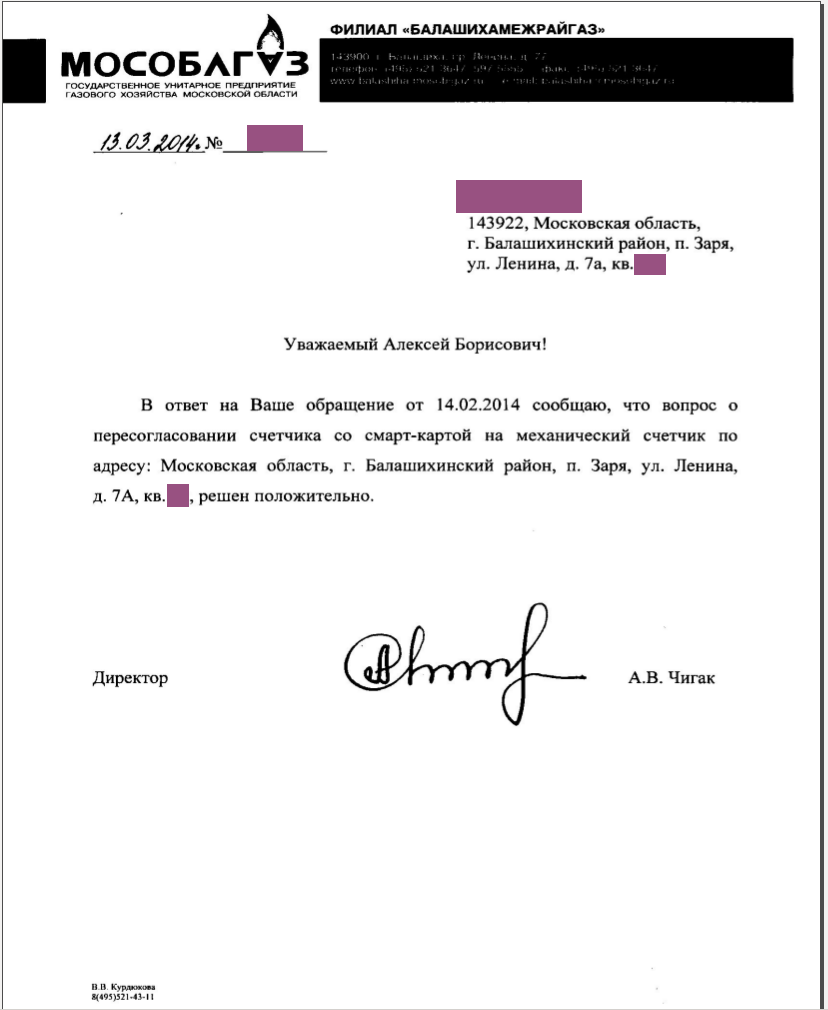 1. Письмо в Балашихамежрайгаз, от них - получение отказа.