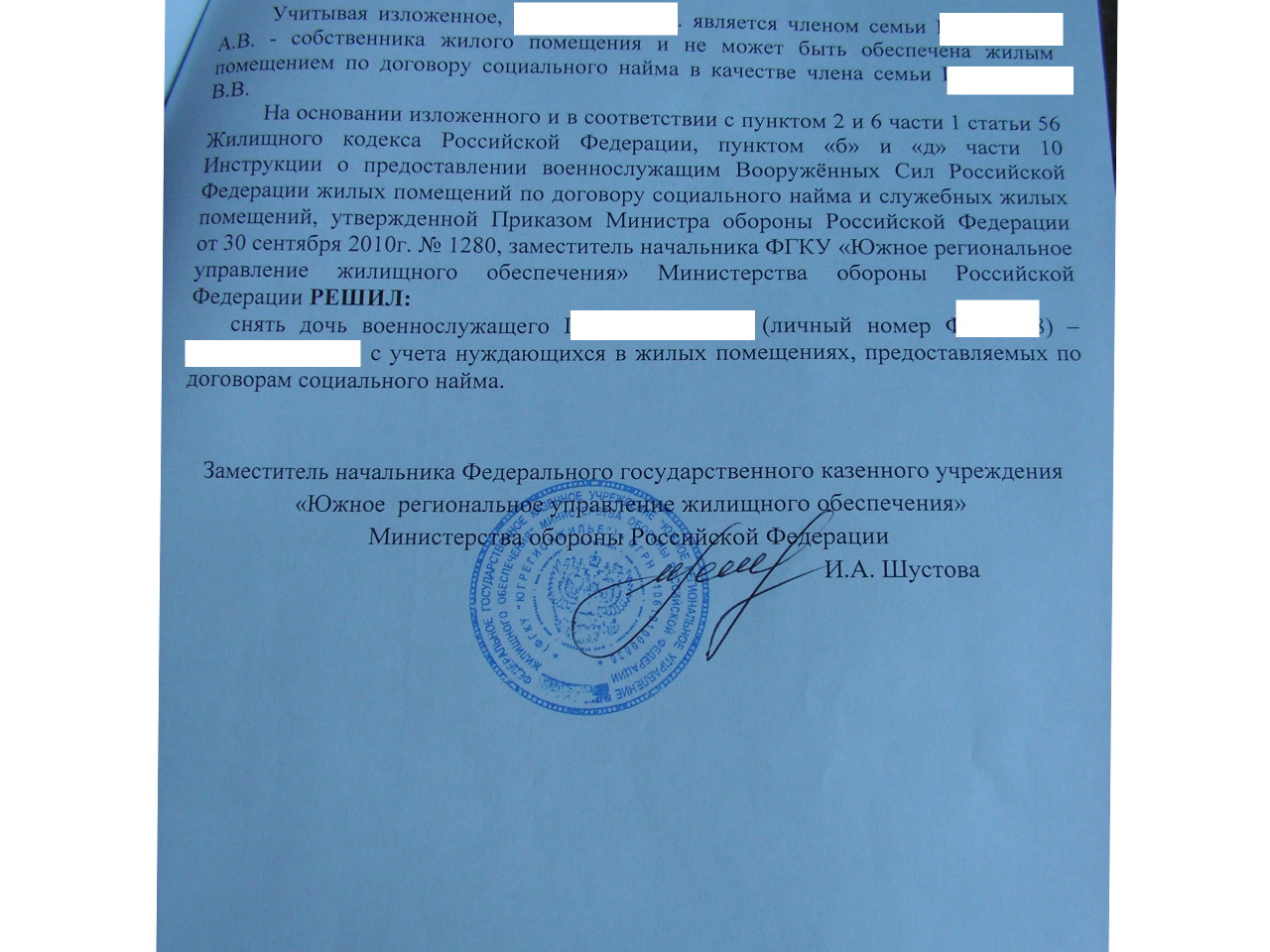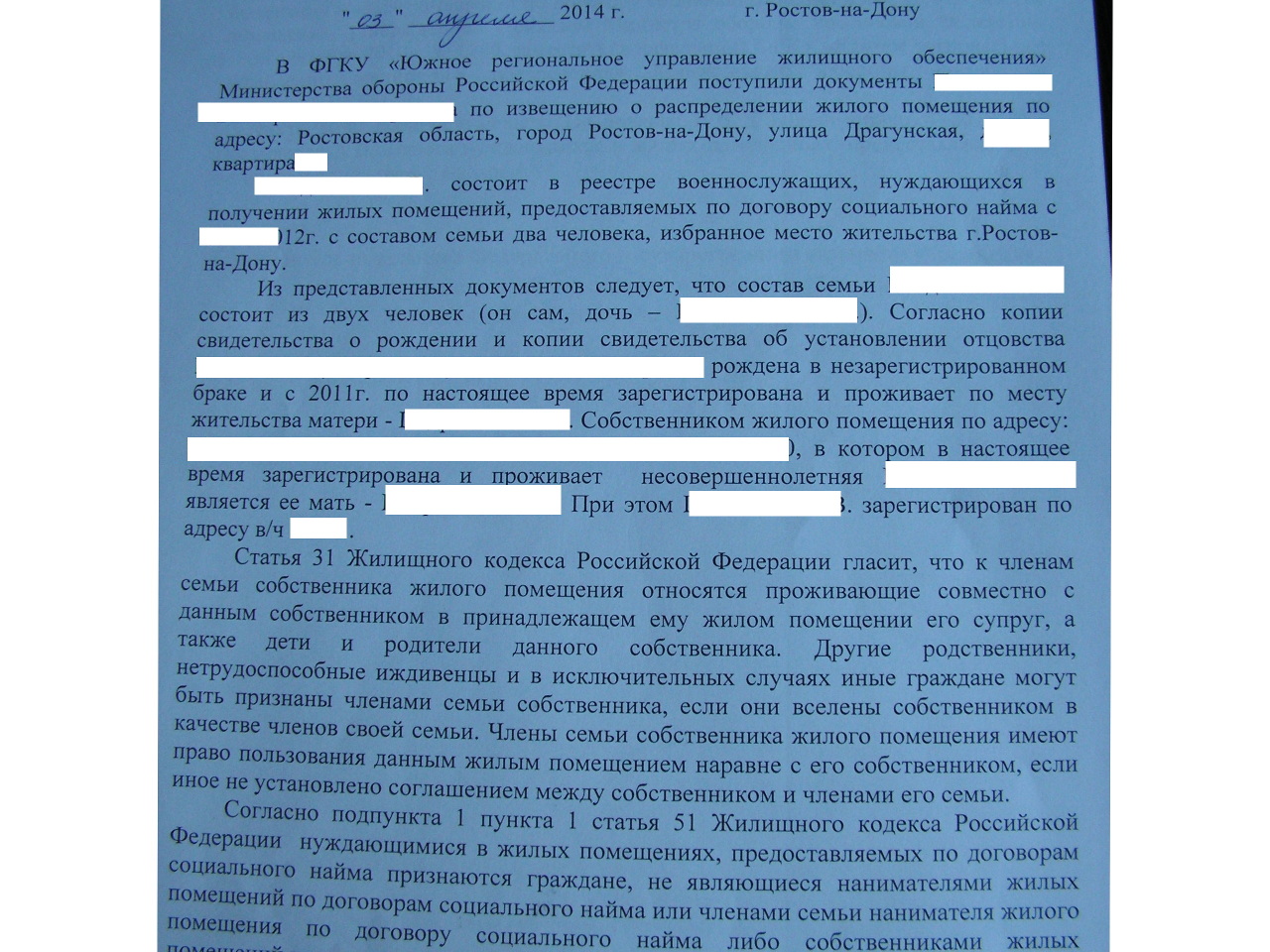 Re: Жилищное обеспечение членов семьи военнослужащего