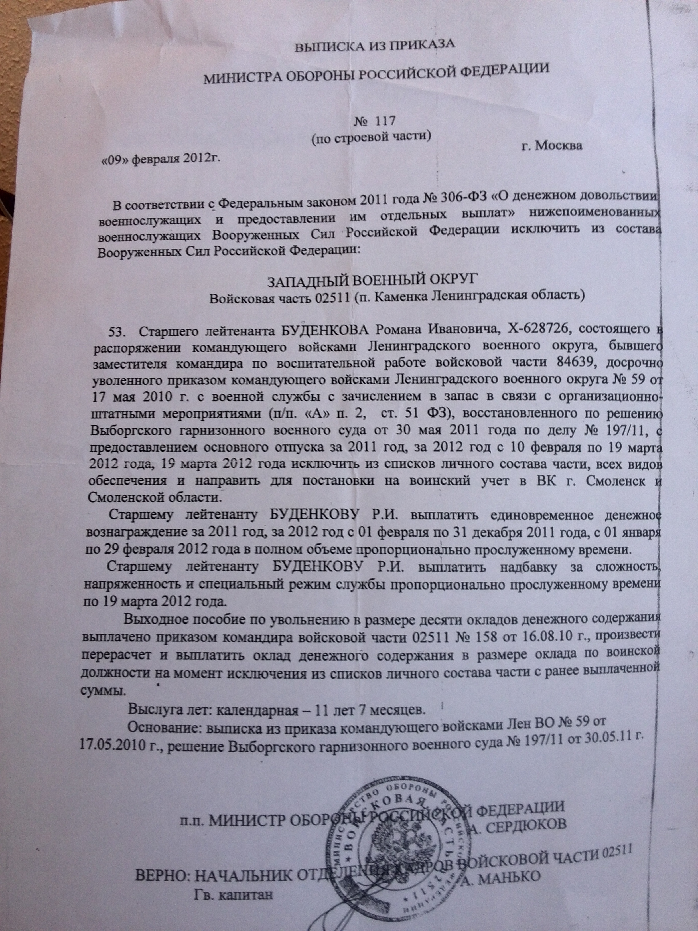 Только вот какую можно отмазку придумать, чтобы не выплатить ЕПУ на следующий день после издания приказа об исключении из списков части? Денег нет по этой статье расхода? Да кто ж поверит, что в ЕРЦ при мильярдах на счетах не хватило на одного конкретного военнослужащего?
