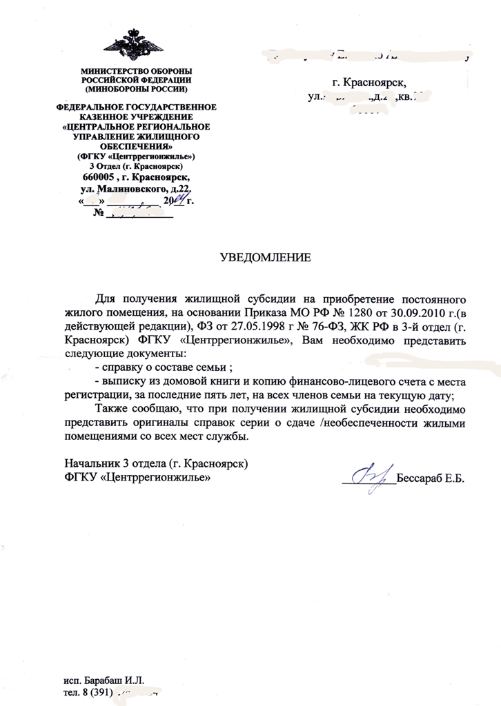 Всем добрый вечер! Контракт заключил в 1994 г. Уволен в 2012 г. В ДЖО объяснили, что в ЖС мне скорее всего откажут т.к. меня должны обеспечить квартирой и тут же предложили двушку с доплатой. В январе 2014 пришло извещение на трёшку с доплатой в 856 тыс.руб. Я написал отказ. Проживаю в служебной квартире. Заявление на ЖС написал, заполнил лист беседы и получил через 10 мин. ответ: "ЖС будет предоставлена по установлении порядка предоставления указанной ЖС, а также по выделении достаточных бюджетных средств..." Далее написали про ст. 15 ФЗ "О статусе в/с..." и в конце ответа написано "...из вышеизложенного следует, что в соответствии с законодательством выбор формы обеспечения жил. помещением отнесено к компетенции федер. органов исполнит. власти, в которой предусмоьрена военная служба." Подскажите, пожайлуста, можно рассчитывать на ЖС или соглашаться на квартиру с доплатой?