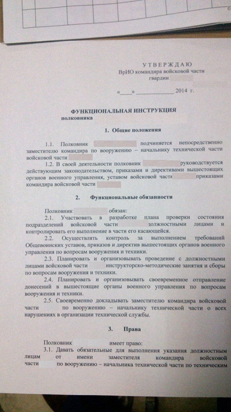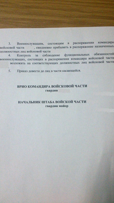 Уважаемые коллеги, нахожусь в распоряжении с апреля 2010 года, контракт закончился в 2011 году, увольнение по ОШМ, соответственно после получения жилья, сегодня началось весеннее обострение в части, где состою в распоряжении, вызвали расписаться в журнале учета инструктажа в/сл. состоящих в распоряжении и ознакомится со странным приказом и функциональными обязанностями . На вопрос что за это было, как обычно в красной армии, вразумительного ответа нет, говорят якобы мной и еще рядом в/служащих, персонально заинтересовался некий начальник (из вышестоящего штаба)
