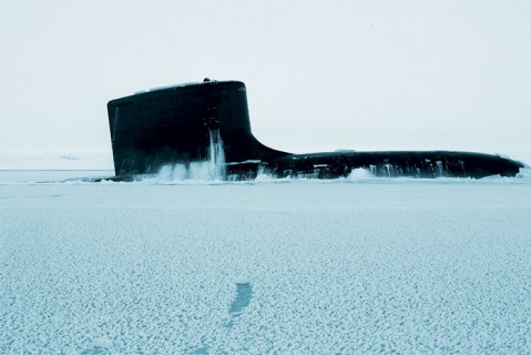 Американская атомная подлодка «Нью-Мексико» всплывает во льдах в районе станции «Наутилус» в ходе учений ICEX-2014. Фото с сайта http://www.navy.mil http://nvo.ng.ru/forces/2014-04-18/10_arctic.html