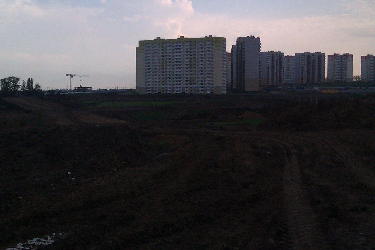 Вид на городок со стороны коммерческой застройки. Слева будущая дорога и магазин.