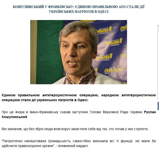 В мире животных Единственной правильной антитеррористической операцией, народной антитеррористической операцией стали действия украинских патриотов в Одессе.