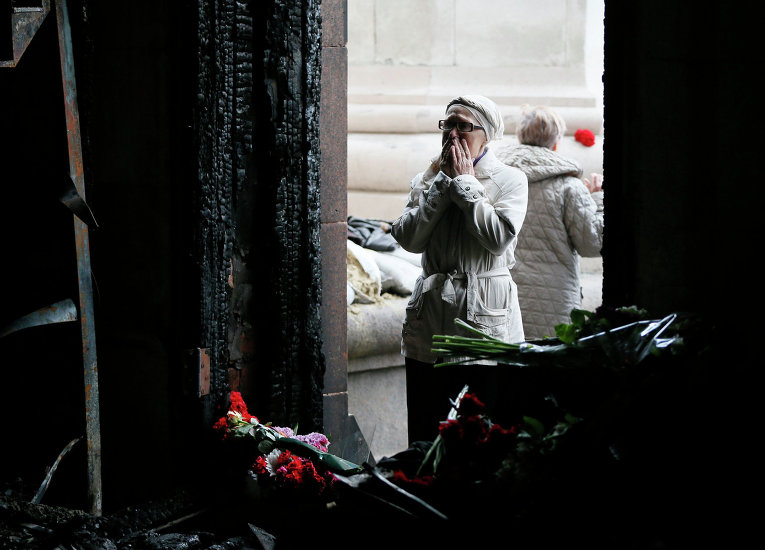 И вот сейчас в голове всплывают обрывки воспоминаний: девушка, которая звонила сестре (они на Куликовом поле обменялись телефонами) и говорила ей - беги на Куликово поле, там нужна помощь, а после событий перезванивала и спрашивала сколько людей в здании, трубку брал какой-то мужчина и тоже пытался выведать какую-то информацию. Сестре тогда и эта девушка, и тем более зачем-то взявший телефон с расспросами мужчина, показались очень подозрительными. Но нам было не до этого. А в момент, когда стали всех загонять внутрь... Я почувствовала, что нужно оттуда бежать, а не прятаться в здании, мужчина, который заорал на меня, толкая в здание, мол, прячьтесь, спасайтесь... Что это было? Я боюсь клеветать на людей, но в голове все больше сомнений, а не провокаторы ли это были? У меня пока только одно объяснение произошедшему, люди спрятались в этом огромном каменном здании, надеясь, что оно выдержит натиск хулиганов, но не убийц и поджигателей. Это ни кому тогда и в голову прийти не могло...