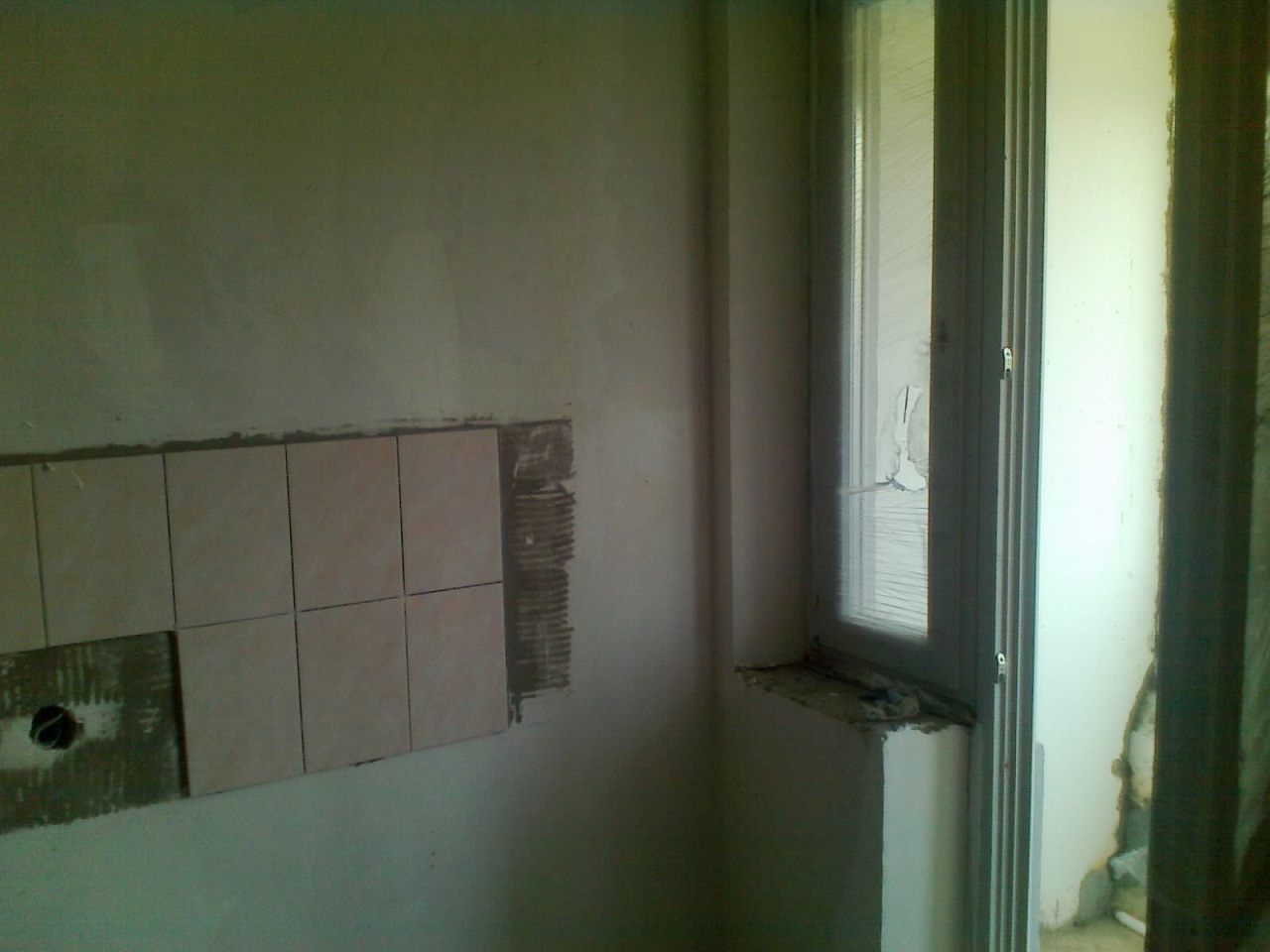 Балкончик из кухни вообще маленький, сама кухня вполне, без всяких выступов и кривых углов. Вдоль длинной стены с фартуком из плитки вполне разместится кухонная мебель со всеми необходимыми штуками, так что остается место под нормальный стол с диваном или стульями. Кому как.