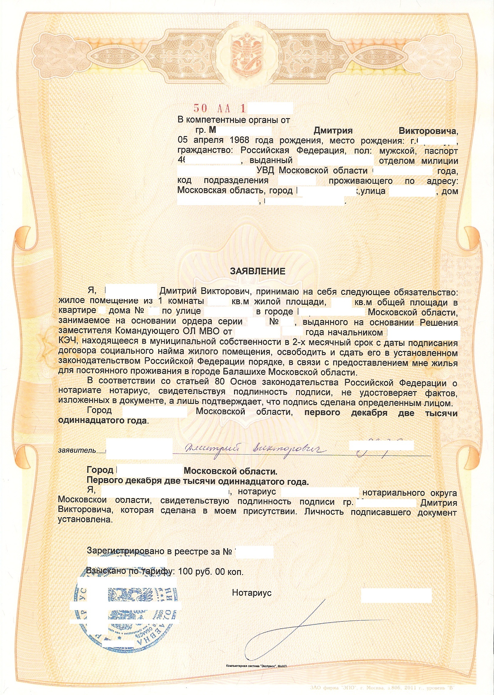 #5693Пишется собственноручно, заверяется нотариально. Образец есть на http://dom.mil.ru/dom/social/permanent/flats.htmПисьменное обязательство об освобождении помещения после получения ДСН пишется от руки в произвольной форме и заверяется или есть образец!?
