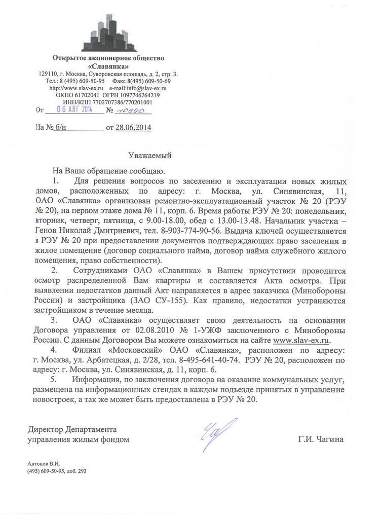 Получил ответ от Славянки. Может кому пригодится, особенно только планирующим заселение на Синявинскую, 11.