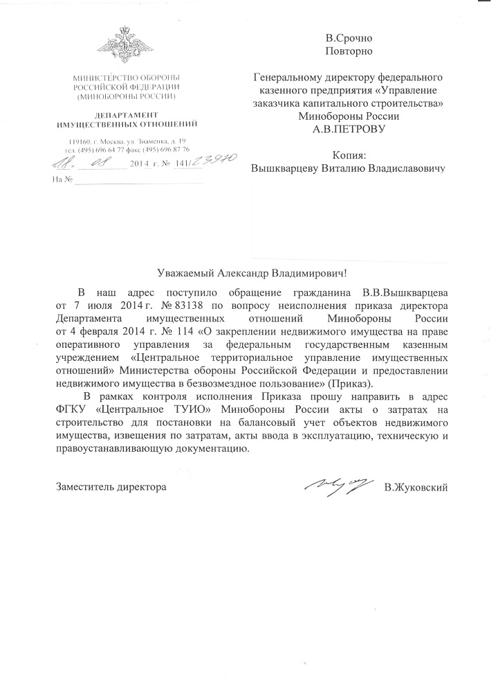 Вот как запрыгали-то наши "казачки" от Департамента имущественных отношений Минобороны. Видимо это связано и с недавней "заморозкой" по выдаче ключей новоселам - связистам.