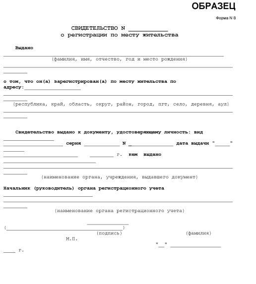 Что за форма такая? Знаю только 1, 2 (вроде) и 9.и свидетельства о его регистрации по месту жительства (ф.8)