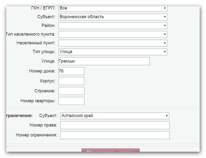 В том то и дело, что пишут - не найдены данные, удовлетворяющие вашему запросу. Попробуйте изменить запрос. Вот я и мучаюсь, дом 76 правильно и квартиру ввожу, и улицу Грамши, иль может что не так делаю? В графе корпус и строение что писать?