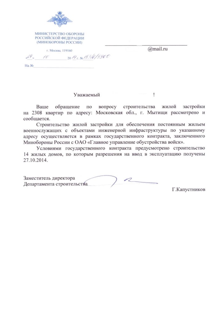 Очень быстро пришел ответ на обращение в приемную Президента из ДГЗКС.