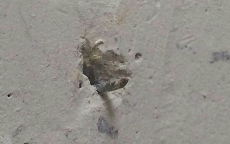 Я попытался расковырять такое пятно на штукатурке, еще когда нет обоев.