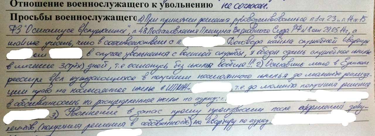 Хитро придумано: пишешь прошу уволить, но не исключать - ты лууузер, а напишешь не увольнять до обеспечения - есть шанс. А разве бывает увольнение и исключение одно без другого? Ведь по сути это просто масло маслянное. Самое паскудное то, что в строевой родной (как казалось) части ни одна. … .не обмолвилась и словом, что может случиться такая засада.