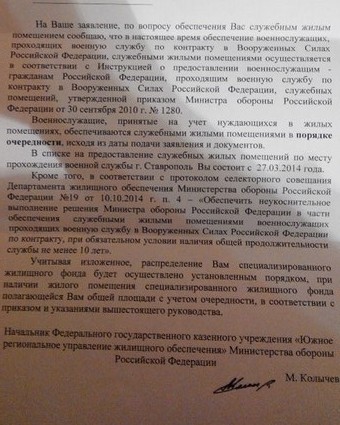 Доброго времени суток, уважаемые форумчане. Снова хочу немного ответов попросить. (продолжение темы Не дают служебное жильё контрактнику)