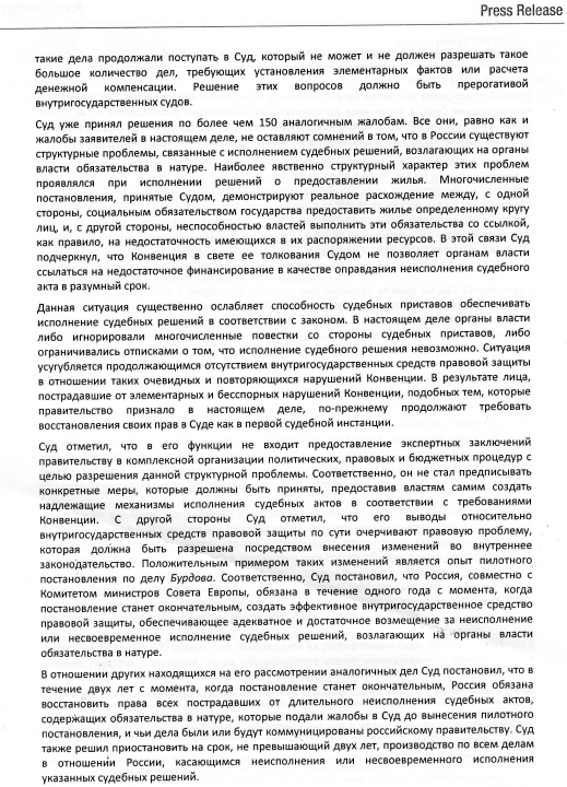А пилотное постановление по делу Герасимова и других разослано нам, думаю, в качестве примера. Ну вот как то так. Надо делать полный перевод, тогда может будет что то более менее ясно.