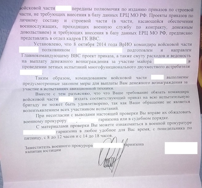 Показать текстСозванивался с главкоматом ВВС. По проекту приказа ГК ВВС на меня, "главкомовский" юрист готовит отлуп. Кто бы сомневался. Только хочется, чтобы он оказался у меня до заседания в 3-м окружном.