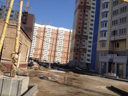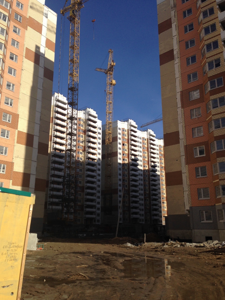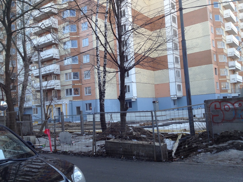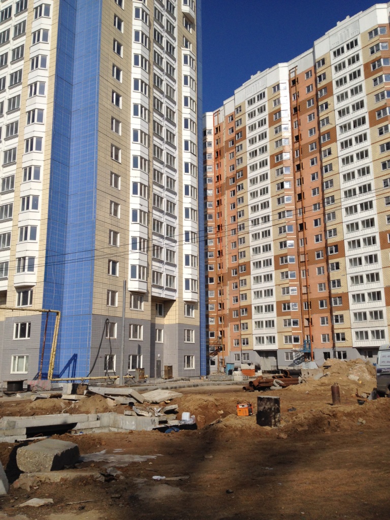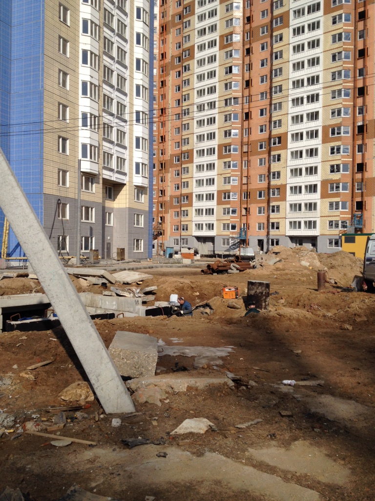 Такое впечатление, что все строители - англичане, жутко боящиеся пятницу 13-е. Никого с 9.30 до 10.40 на площадке строительных корпусов 1,3,4,5,6. Ветродуйчик приличный. Асфальт и брусчатка у домов засыпаны частями баллонов из-под монтажной пены и герметика. Много не закрытых люков. Брусчатка положена как попало (а может просто грунт гуляет