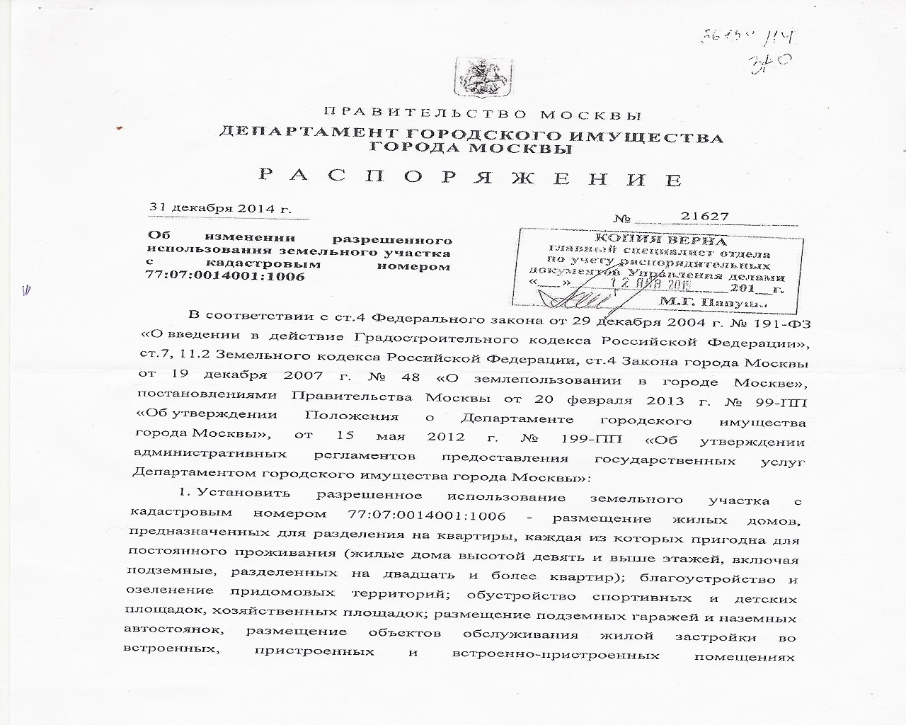 #12035Спасибо за предоставленный документ! Есть самый главный документ на землю, который разрешает строить жильё! Возможно, МО только к концу 2014 года и смогло оформить это распоряжение. Очень надеюсь, что всё идёт к счастливому финалу!!! Терпения нам всем!!!