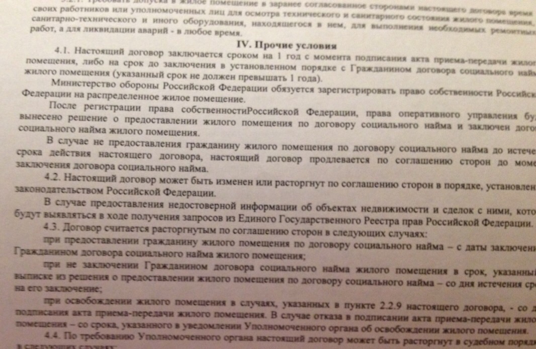 Понятно теперь, вот значит они как. Сам договор они оставляют как в рекомендуемом образце, то есть в нём сохраняется обязательство при выполнении соответствующих условий заключить только ДСН, и соответственно при невыполнении, например в отказе заключить ДСН - в пользу собственности (или при незаключении его в установленный срок), путем своевременной подачи Заявления о предоставлении жилых помещений в собственность бесплатно, договор расторгается (считается расторгнутым). Как-то так. В любом случае по идее договор о временном пользовании может только определять права и обязанности по пользованию конкретными помещениями в течение конкретного периода и не должен(не может) ущемлять другие более значимые права, определённые в Законе о статусе, как-то право на получение жил.помещений в собственность бесплатно, которое изъявляется путём подачи соответствующего заявления.