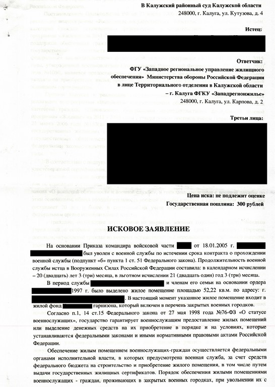 Вот ссылочка на опеляцию https://rospravosudie.com/court-zabajka ... 450693684/. Исковое заявление сейчас найду и выложу. В кратце: обязать ГКУ Западрегионжилье включить меня и членов моей семьи в сводный список получателей ГЖС, а также выдать ГЖС.