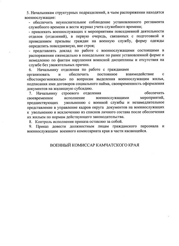 п.5 Создавать условия для постоянной занятости по службе военнослужащих, состоящих в распоряжении, в связи с чем: