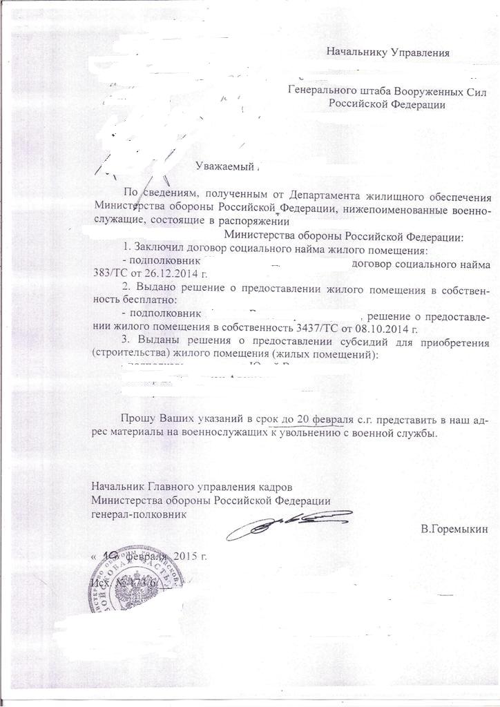 Дорогие друзья и сочувствующие недавно узнал про новый вид мошенничества добрыми сотрудниками ДЖО МО РФ. Которые идут на всевозможные ухищрения и обман, лишь бы побыстрее избавиться от заштатников. Так с недавнего времени они стали информировать ГУК МО РФ о якобы о том, что военнослужащие которые согласились на договор пользования жилым помещением, на самом деле получили жилье по ДСН или в собственность. Естественно военнослужащий узнает о том, что он оказывается получил ДСН в день составления листа беседы. :lol: