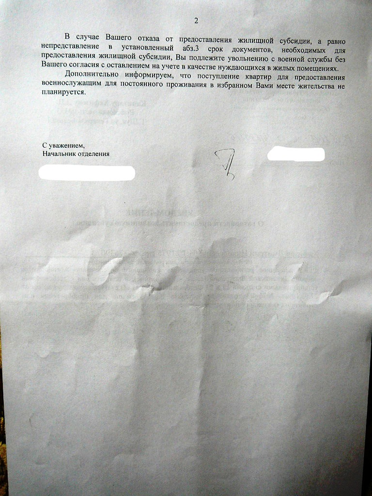 Это что мне тут один форумчанен из г. ИВАНОВА в личку прислал данный шедеврЗдравствуйте, коротко о себе:МО РФ,выпуск 2003г,капитан,увольняюсь по ОШМ,нахожусь в распоряжении с января 2012г. место службы г.Чита ,признан нуждающимся в обеспечении ЖП по ДСН в ИПМЖ г.Чита с мая 2012г.(на состав семьи 4 чел.)Проживаю в служебной кв.по дог.служ.найма(общ.пл 39 кв.м),.за время нахождения в распоряжении ни разу нигде не предлагали ЖП, соответственно не разу не отказывался от ЖП и не менял ИПМЖ. Что касается ЖС рапорт и заявление ни какие ни кому не писал. Сегодня в почтовом ящике обнаружил письмо (показываю)