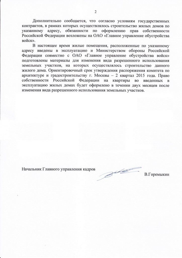 чтобы за месяц-два (до 30 июля 2015 г.) был полностью решен вопрос с подключением коммуникаций к нашим домам по постоянной схеме, для этого есть все, кроме желания ГУОВ и "Оборонсервиса" в лице "Оборонэнерго", частично, может быть и "Славянки";