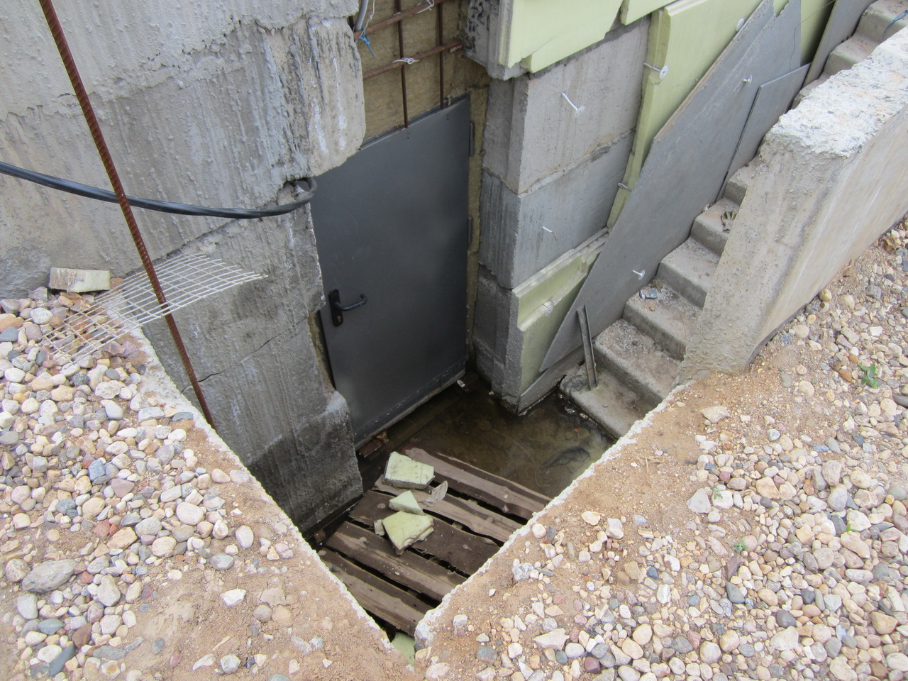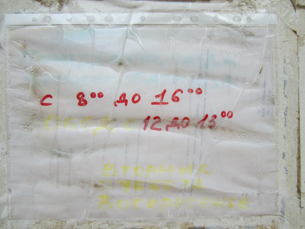 Двери подъездов закрыты и опечатаны, частично заварены. Только в 3-м была открыта, но не лестничная, а что-то вроде кладовки. Там же у 3 подъезда вход в подвал залит водой, судя по щели под дверью сам подвал тоже на бассейн похож.