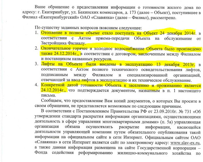 Вот, например, оцените такой ответ из Славянки, подписанный заместителем директора Авдеевым, который исполнил некий Шабалин Вадим Владимирович, и который сейчас непосредственно участвует в заключении договоров с жильцами (в предоставлении документов, подтверждающих указанные им "факты" мне было отказано): Еще один документ.