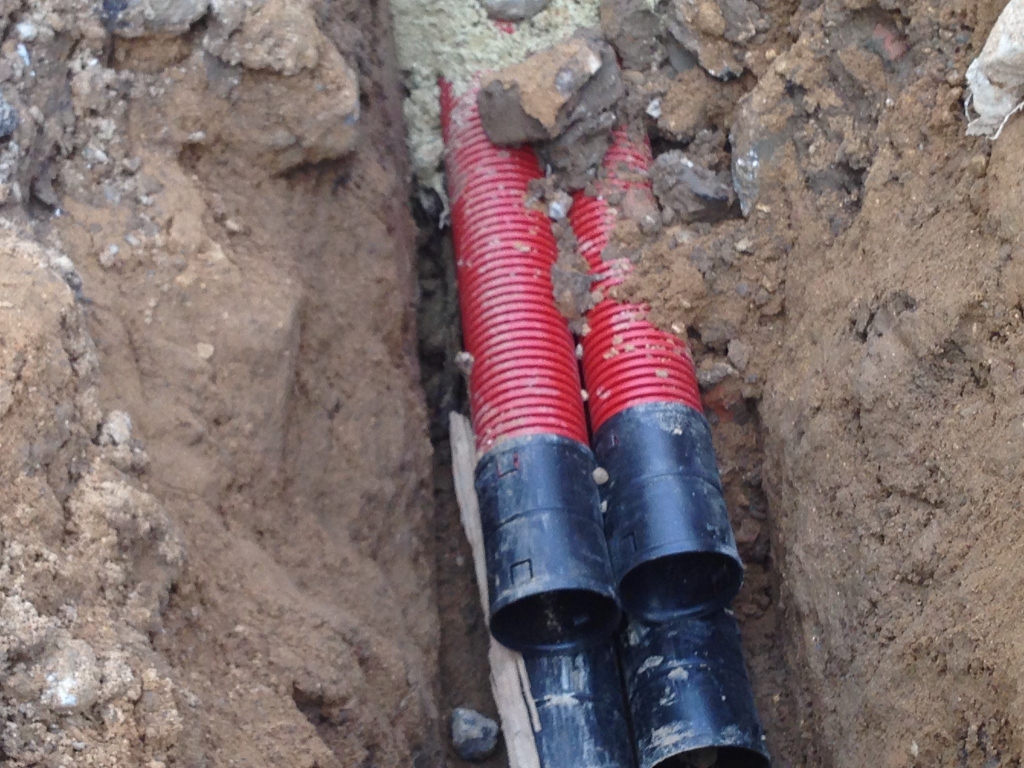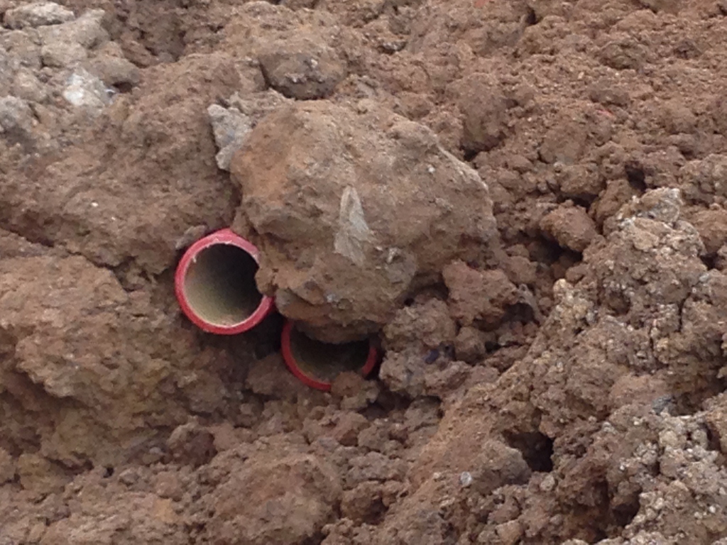 Дальше - картина маслом... Россия строит... Продолжили прошлогодние работы связисты- тянут трубы для линий связи. Делают колодцы и прокладывают красные трубы, для будущих линий связи. Где по газонам тянут, где рушат бордюры и асфальт. Только у нас так могут строить- где ж тут финансирования хватит.