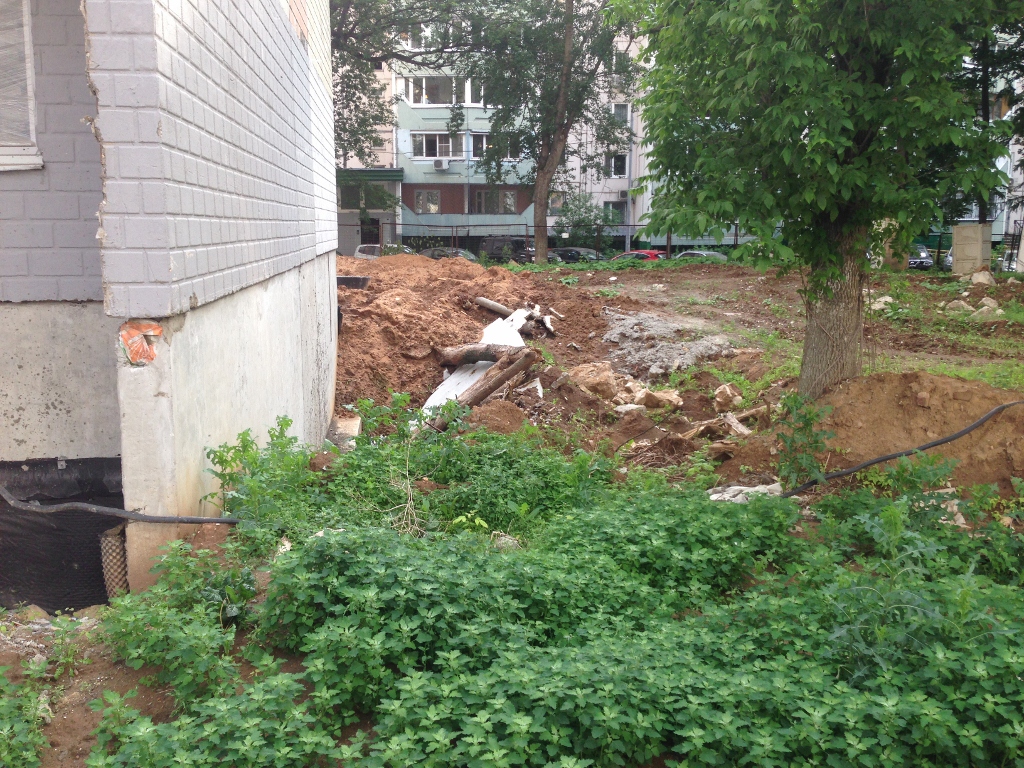 Дальше - картина маслом... Россия строит... Продолжили прошлогодние работы связисты- тянут трубы для линий связи. Делают колодцы и прокладывают красные трубы, для будущих линий связи. Где по газонам тянут, где рушат бордюры и асфальт. Только у нас так могут строить- где ж тут финансирования хватит.