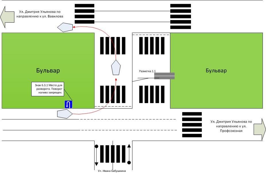 В Москве двигался по улице Дмитрия Ульянова от ул. Вавилова по направлению к ул. Профсоюзная. Посреди улицы бульвар. Не доезжая примыкающей к ней ул. Ивана Бабушкина, установлен знак 6.3.1 "Место разворота. Поворот налево запрещен". Через метров 20 от этого знака идет разрыв бульвара, где я в соответствии с этим знаком и разворачиваюсь по "малому" радиусу в обратную сторону, после чего меня благополучно тормозят гаишники и составляют протокол. В протоколе сказано "... при развороте в районе дома 8к1 по ул.Дм.Ульянова от ул.Ивана Бабушкина, нарушая требования дорожной разметки 1.1, совершил выезд на полосу для встречного движения и продолжил движение по ней до поворота на ул.Дм.Ульянова в сторону ул.Вавилова. Ответственность по ст.12.15 ч.4". Схему движения, а также ссылку на карту гугл этого места нарушения прикладываю. https://www.google.ru/maps/@55.690193,3 ... 6656?hl=ru