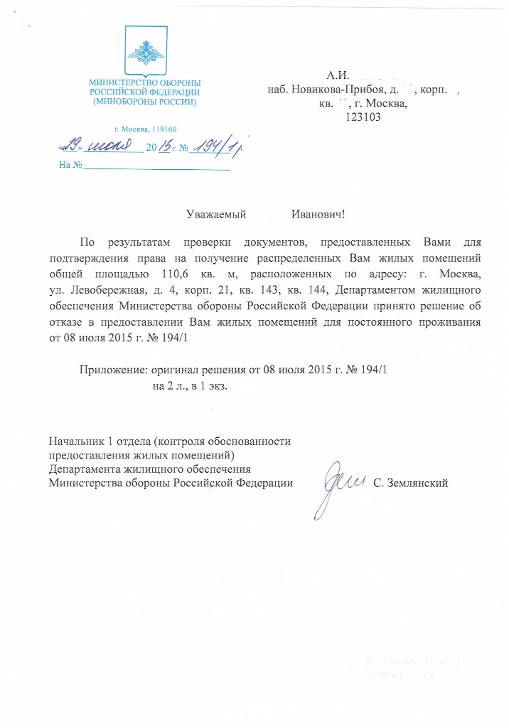 И еще, большая просьба, не впихивайте Вы в обращение к президенту строчки про СУ-155. Кто знает детали этого контракта? Да никто, зачем гадать на кофейной гуще и подставлять себя и общее дело, чтобы потом просто получить обвинения в некомпетентности и незнании ситуации. МО обязано обеспечить нас квартирами, а то что СУ-155 банкрот - так это проблемы не нас, а МО. Пусть МО само разбирается и с ГУОВ и с СУ-155 им были предоставлены деньги и время для решения конкретной проблемы. Деньги успешно профуканы, проблема успешна не решена, но кругом звучат хвалебные речи и лихо щелкают каблуки. Вот об этом и стоит говорить.
