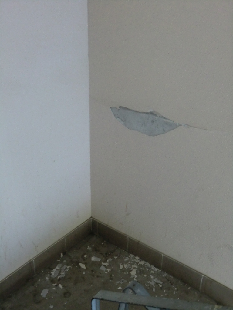 5. Подъезд начинает потихоньку разваливаться, где-то штукатурка уже облазит, подтеки, плитка на полу отвалилась, и т.д...