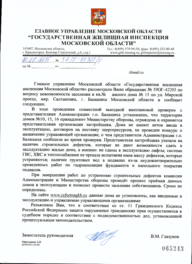 Обязательно приложу, также как и ответ Подольской Славянки о не сдаче домов в эксплуатацию.