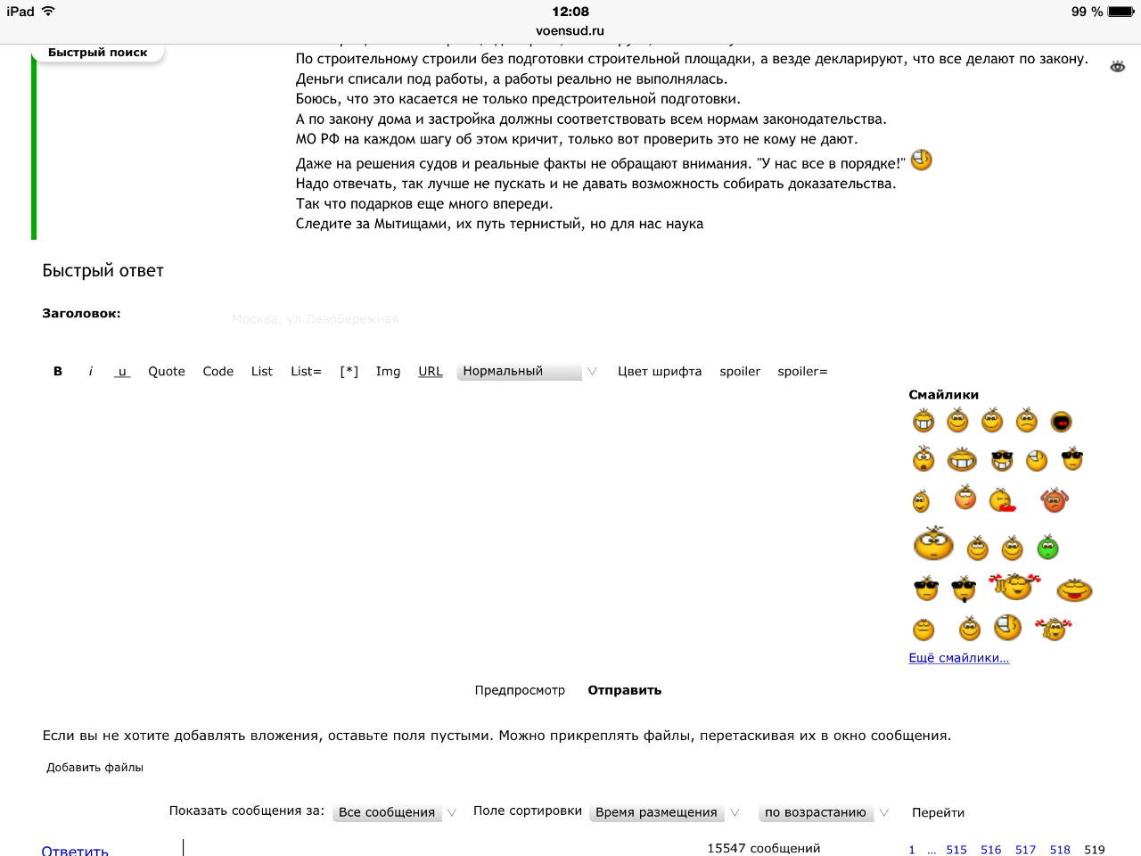 #15518Быстро решить вопрос может только Верховный. После наводнения на Дальнем востоке вопрос строительства домов начал решаться только после его вмешательства...QR_BBPOST 16 сентября состоится заседание Общественного совета при МО РФ на котором было обещано вопрос поднять.