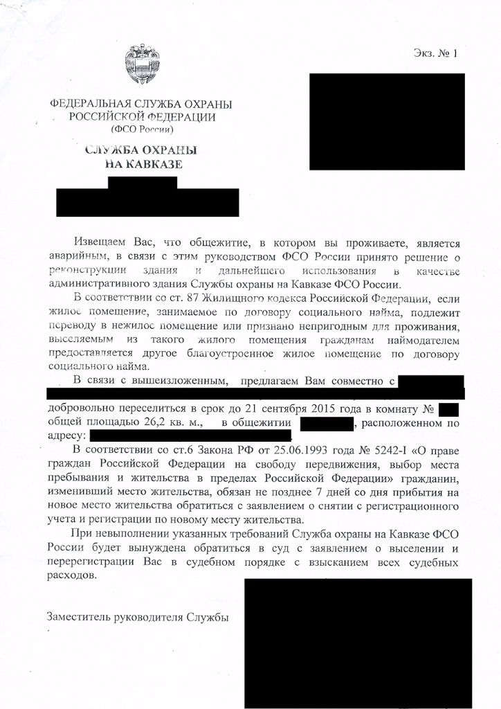 Кроме того переезд может быть осуществлен только на основании заключенного договора (например, ДСН) на новое жилье. В документе пока даже нет предложения заключить такой договор.