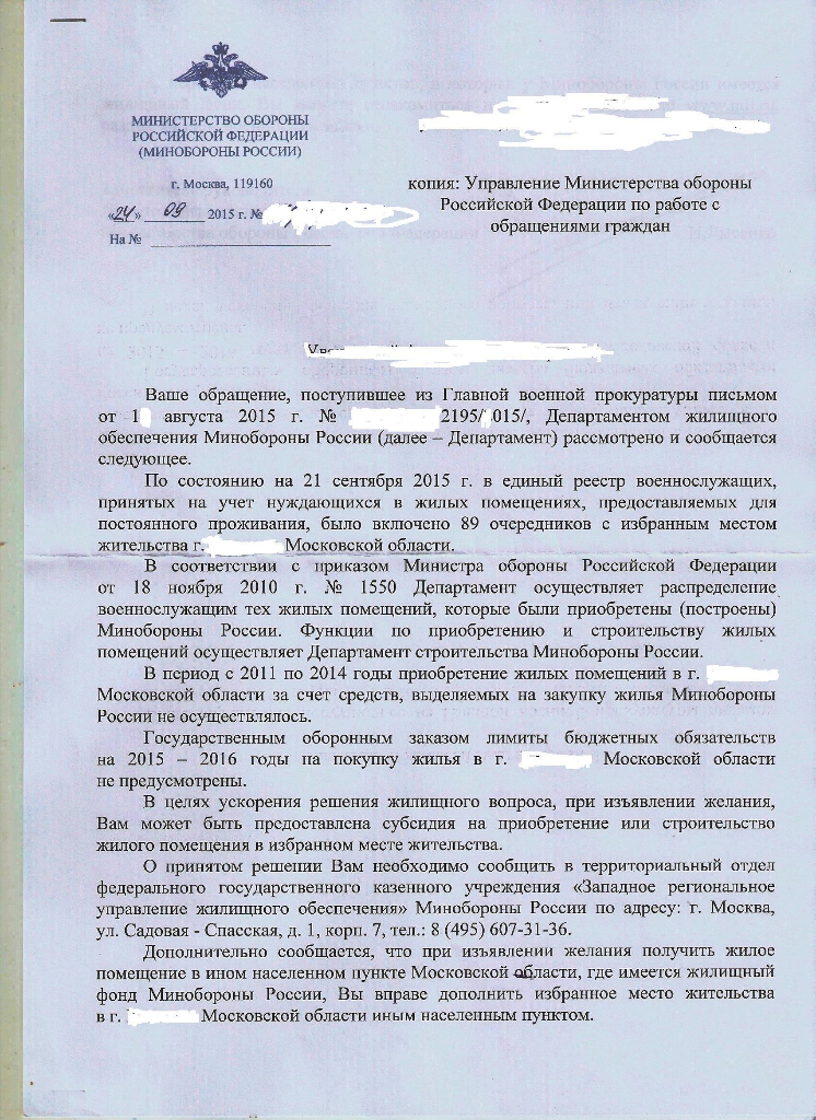 Хочу поделиться информацией, может кому-то она станет полезной. На днях получил письмо с ДЖО, все самое интересное выделил красненьким, правда криво, не обессудьте. Предыстория такова: написал письмо в ДЖО с просьбой сообщить сколько человек в очереди передо мной на получение жилья по ИПМЖ, подавались ли сведения в ДС на потребное количество, на закупку и т.д. и т.п. Ответа не получил. Подал в суд на ДЖО об обжаловании действий, суд выиграл. Ответа дожидаться не стал. Написал в ГВП на проведение проверки по данному делу. В этом промежутке пришел ответ с ДЖО, решение суда ведь надо исполнять, а текст примерно такой «Уважаемый Иван Иванович Вам предлагалось 2 квартиры там то там то (не по ИПМЖ соответственно), Вы отказались, и у Вас ничего не осталось, как взять и получить ЖС!!!». И через неделю письмецо, долгожданное, всё подробно расписал и оказывается, что ЖС никто не навязывает. Всем удачной борьбы с правосудием.