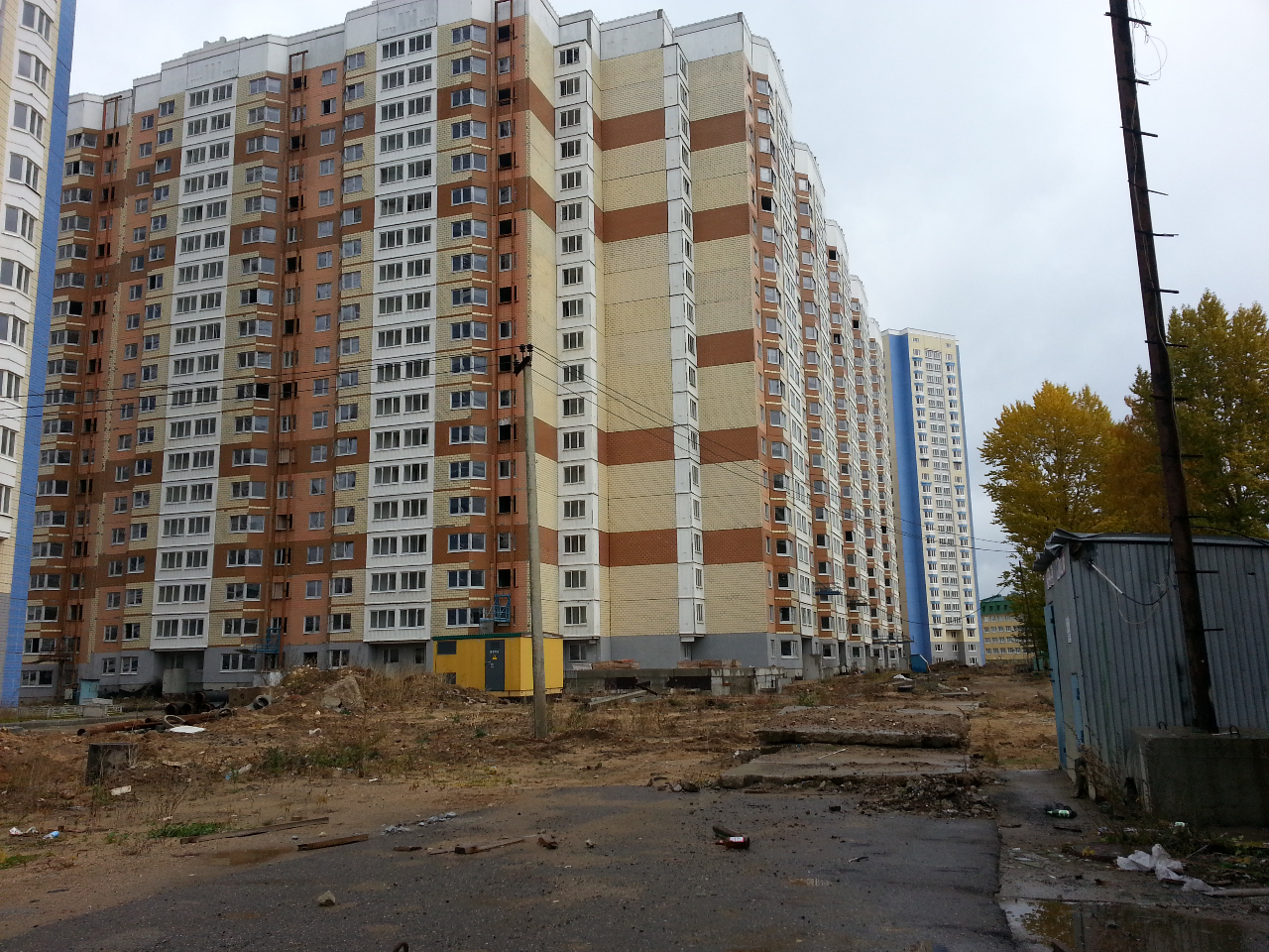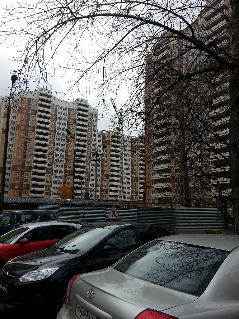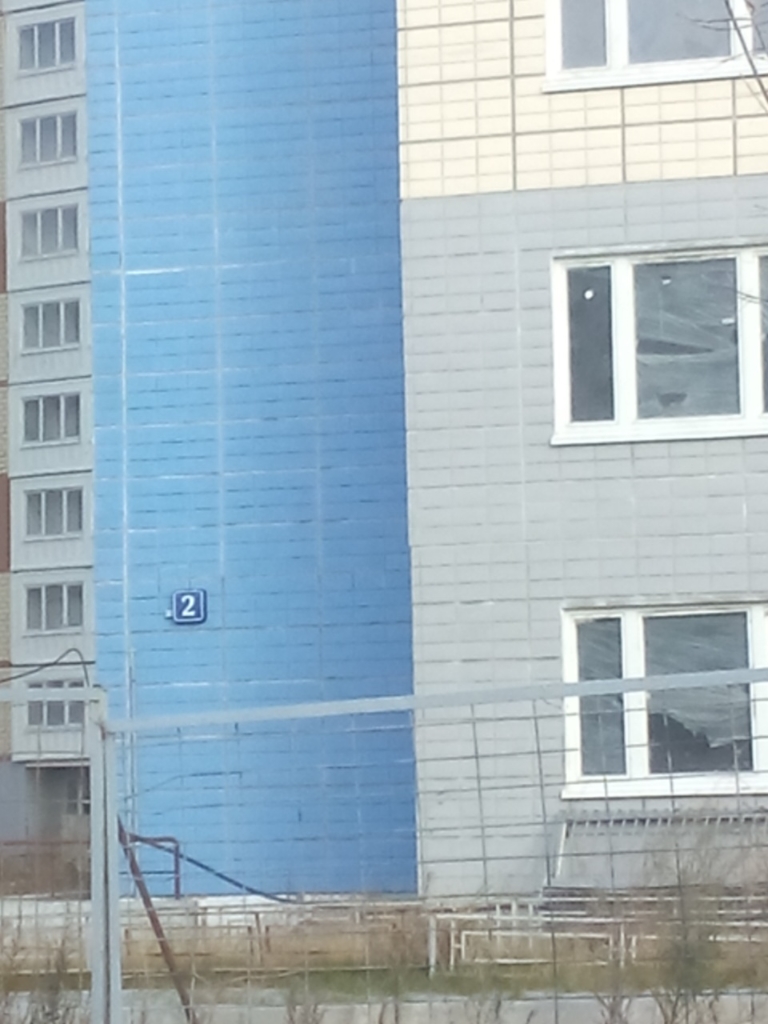 К. 4, вид от прокуратуры. Рабочие курят на балконе, в воздухе витают мелодичные звуки кувалды.