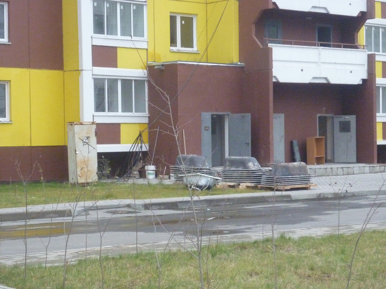 в 10 доме был на 8 этаже. есть отопление, установлены электросчетчики на площадке, установлен плинтус, установлен унитаз, установлены перекрывные краны, подключены патроны к проводам, стоит мойка посреди кухни. Проверил свет в туалете - есть, проверил работу розетки в одной комнате - работает, т.е. электричество подключено. Почти можно жить. Возле 2 подъезда лежали маленькие ванны. В 8 утра было около 10 рабочих. Какой-то руководитель сказал, что 15 декабря собираются начать сдачу дома.