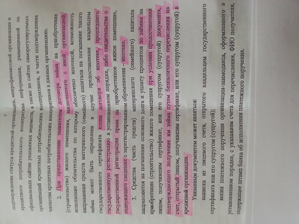 #217Так как нет определенной схемы по выплате Материнского капитала в качестве доплаты за доп.метры, все как могут, так и выкручиваются. Но нам в Пенсионном фонде сказали сразу, что на квартире обязательно должно быть ипотечное обременение: ипотека в силу закона или ипотека по договору. У них даже есть что-то типа Письма или еще чего-то, в котором это написано. Кстати, я его сфотографировала: Текст выделен специалистом ПФ.QR_BBPOST Договор у Нас с поручителем, про залог квартиры разговора в банке и ПФ РФ не было.