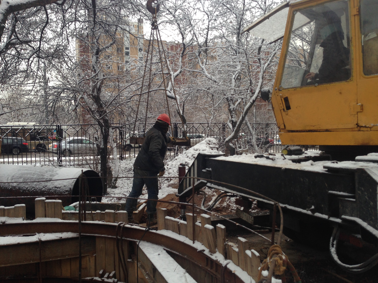 Круглый колодец у 19 корпуса ЛБ видео трубу которую проложили и в него с другой стороны бурят с квадратного колодца.