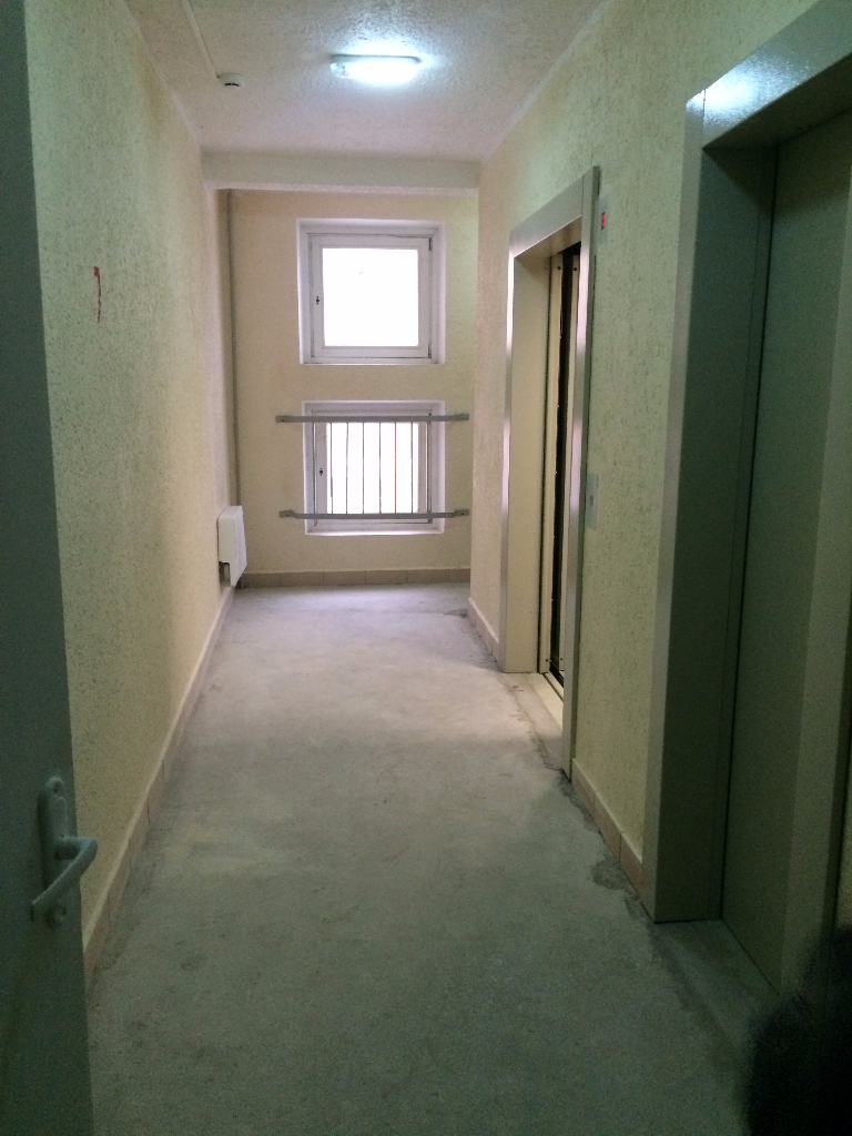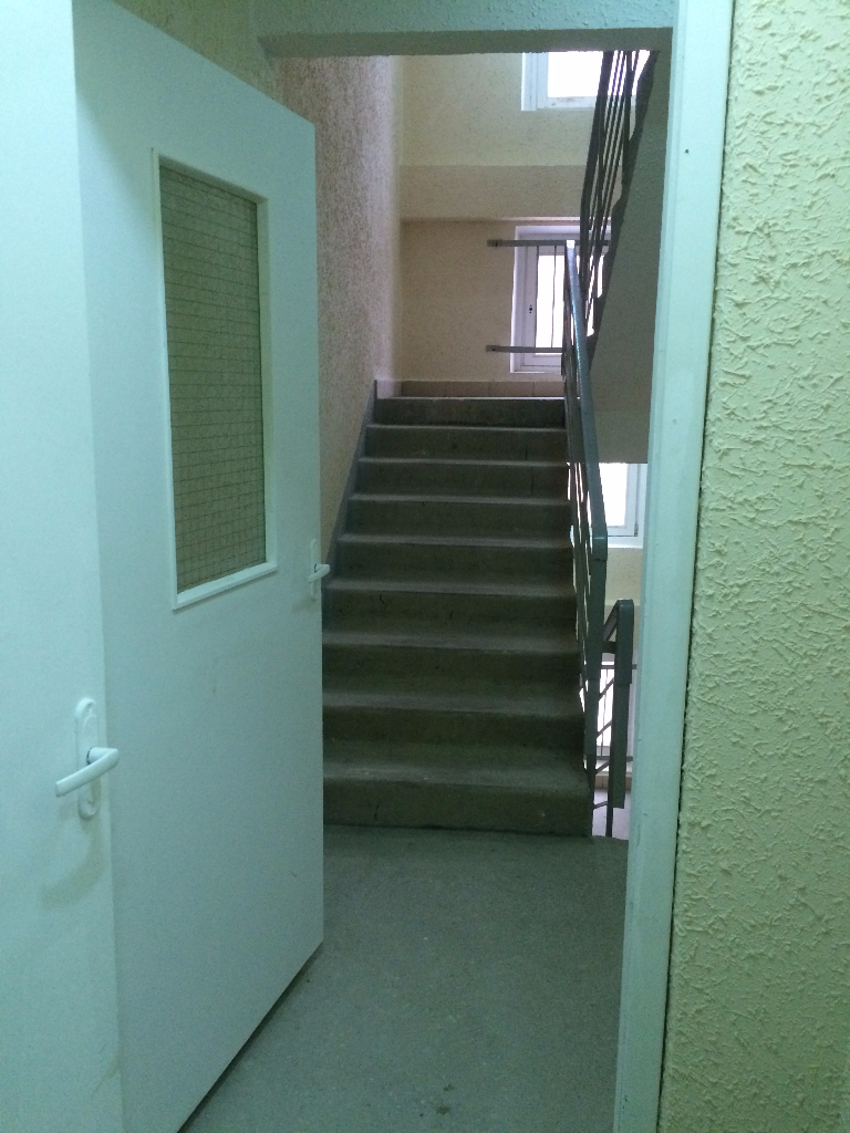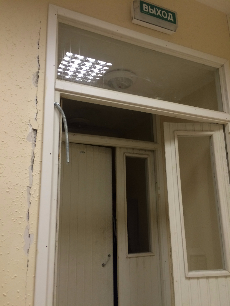 За время простоя наших чудных домов, в подъезде уже штукатурка потрескаться успела.