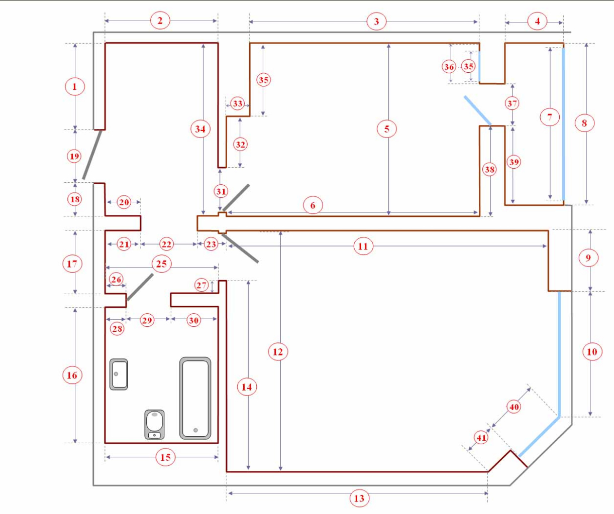 Для удобства выкладываю собственную схему. Нужные размеры - пронумерованы.